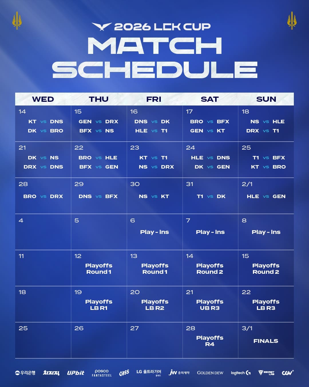2026 LCK컵, KT vs DNS 대결로 14일 개막